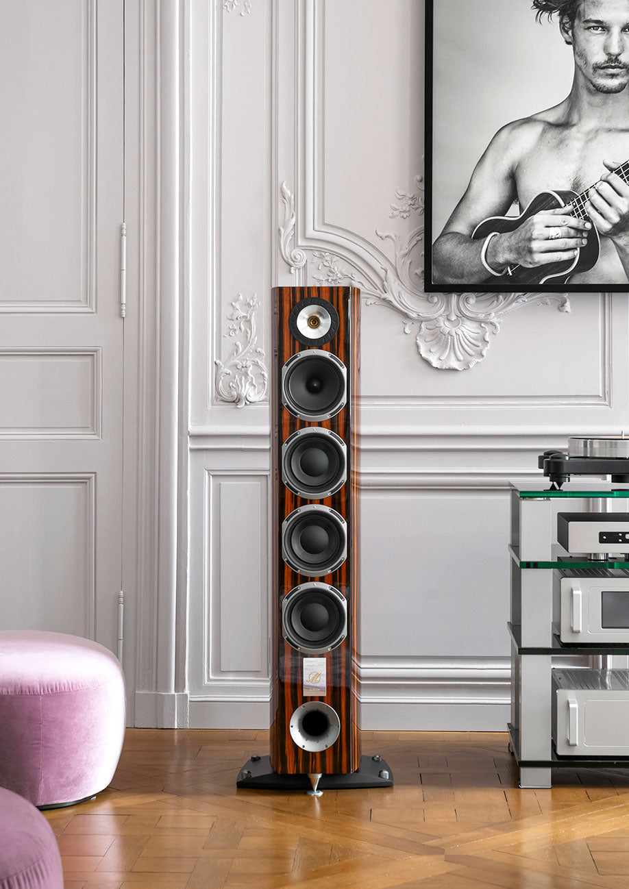 L’enceinte est un objet de plaisir tant sur le plan acoustique que esthétique. Jullien expérimente chaque jour de nouvelles associations de matières et de couleurs pour créer des objets sonores vivants, luxueux et intemporels.