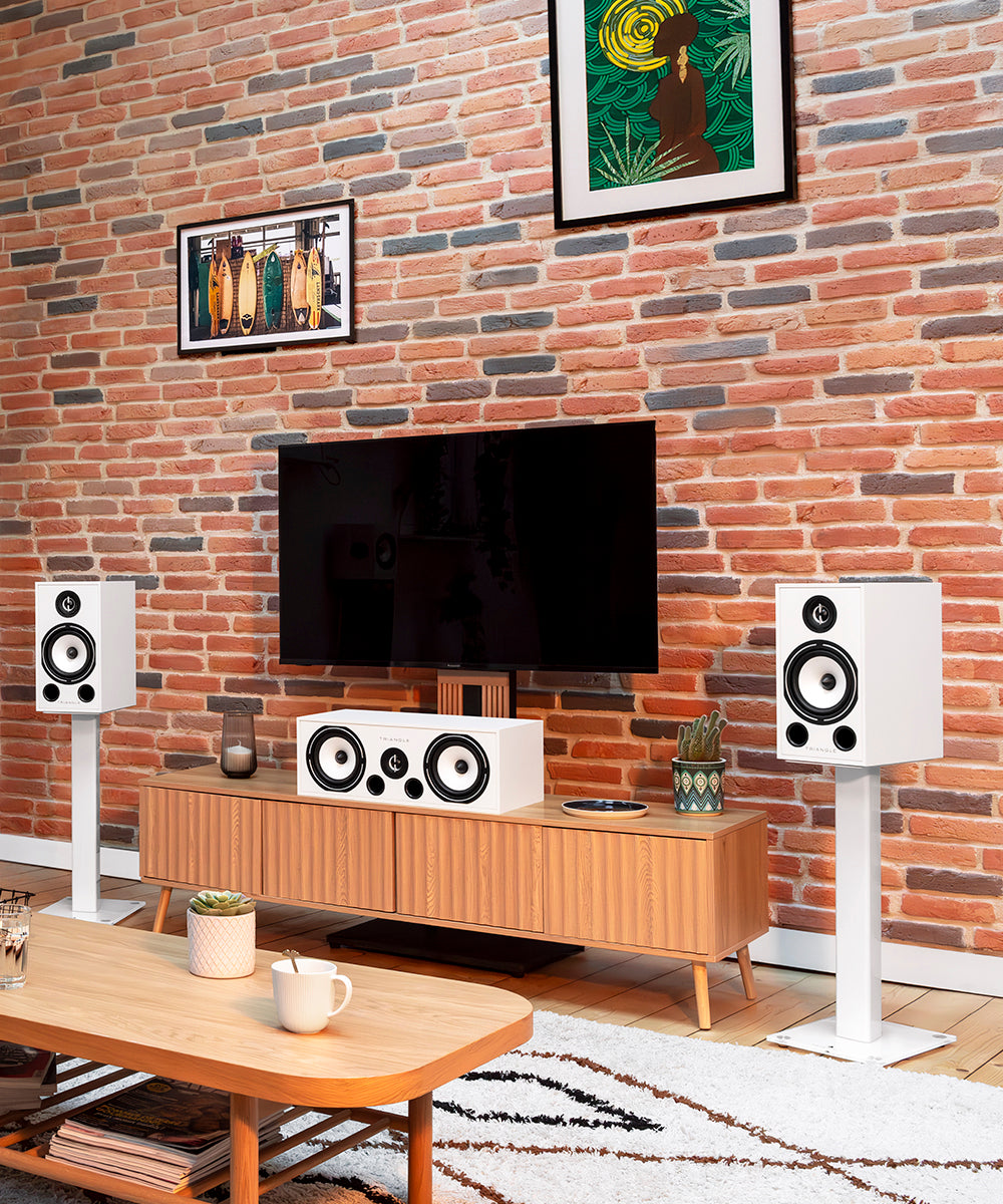 Pour garantir une parfaite cohérence sonore, il est recommandé de choisir un ensemble de la même gamme. En plus d’une esthétique coordonnée, vous aurez des performances techniques similaires et une cohérence idéale sur la signature sonore.