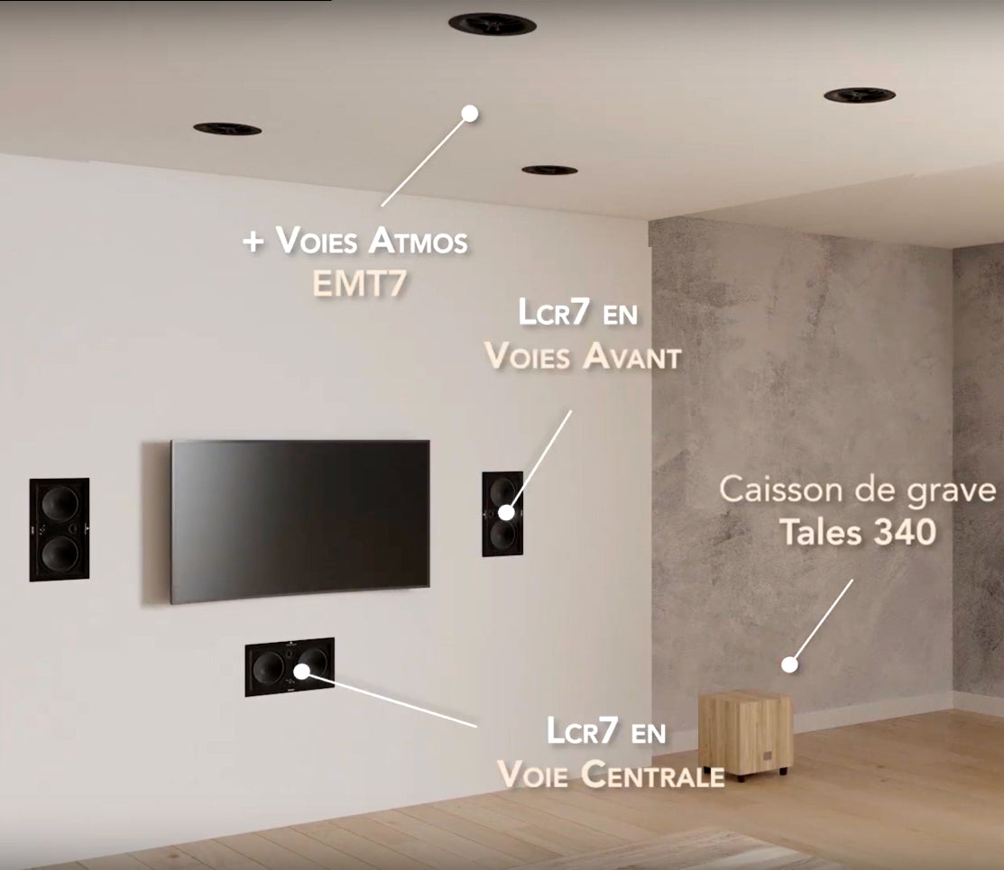 - Enceintes Hybride : comme la LCR7 qui peut être utilisée comme une enceinte centrale ou en enceinte frontale ou surround. Elles s'encastrent au mur.