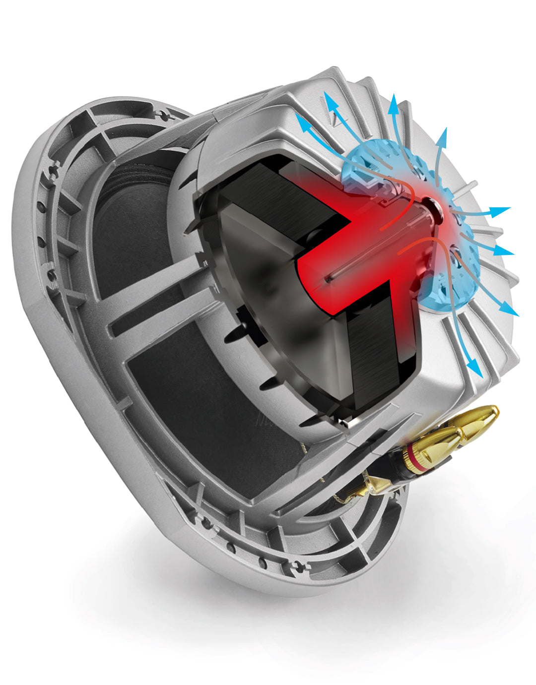 Ce dissipateur permet une excellente conduction de la chaleur vers la structure externe du haut-parleur, améliorant ainsi la tenue en puissance du transducteur.