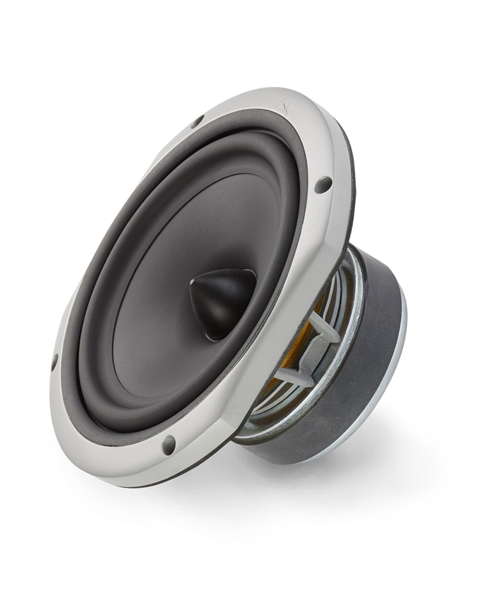 This driver benefits from numerous enhancements producing a faster and deeper bass. It is equipped with a double magnet motor, a double-layered coil and an inverted half-roll rubber suspension, all of which ensure a faster speaker response. The cone profile was developed to be purely used in low frequencies. To make it more rigid, the glass fiber membrane is supported by a second paper membrane.