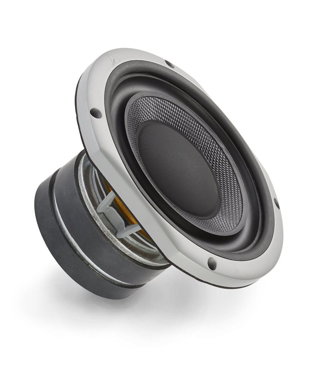 Specifically designed for this range, with the objective of creating a bass unit capable of reproducing low frequencies without a large volume load, while maintaining linearity in the high frequencies. It uses the same aluminum basket and treated paper cone to achieve the perfect tonal balance.